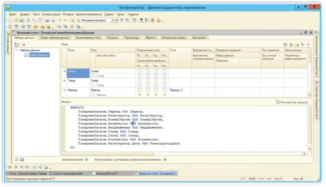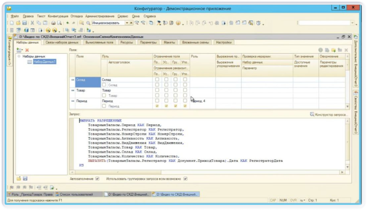Влияние ролей на СКД, создание внешнего отчета 1С