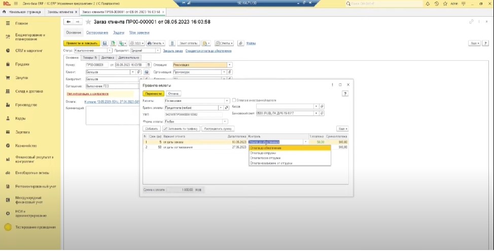 Разберем заказ клиента и рассмотрим, что представляют собой правила оплаты и варианты обеспечения.