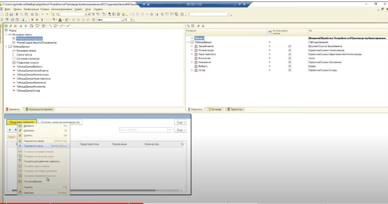 1С:ERP Управление предприятием: cоздание обработки по сбору заказов клиентов на производство
