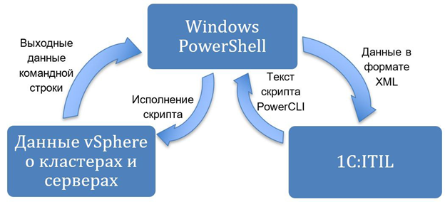 -	через командный интерфейс «VMware PowerCLI» для сбора данных о кластерах и серверах.