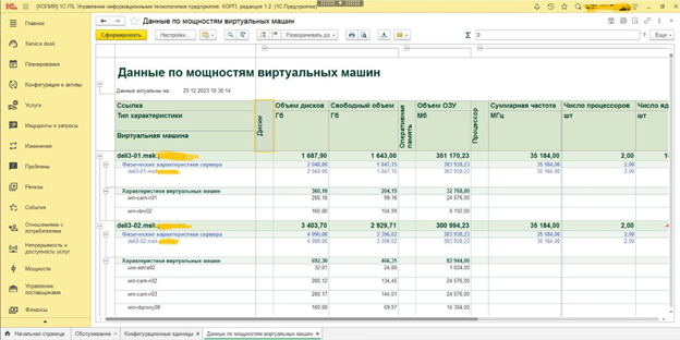 Для управления производственными мощностями IT-отдел компании использует решение 1C:ITIL, где учитывает серверы и виртуальные машины как активы.