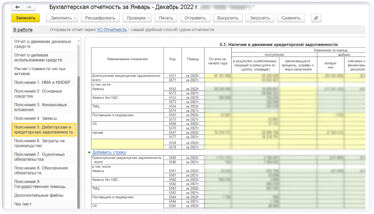 Таким образом, были реализованы все требования заказчика по заполнению форм пояснений к бухгалтерскому балансу и отчету о финансовых результатах.
